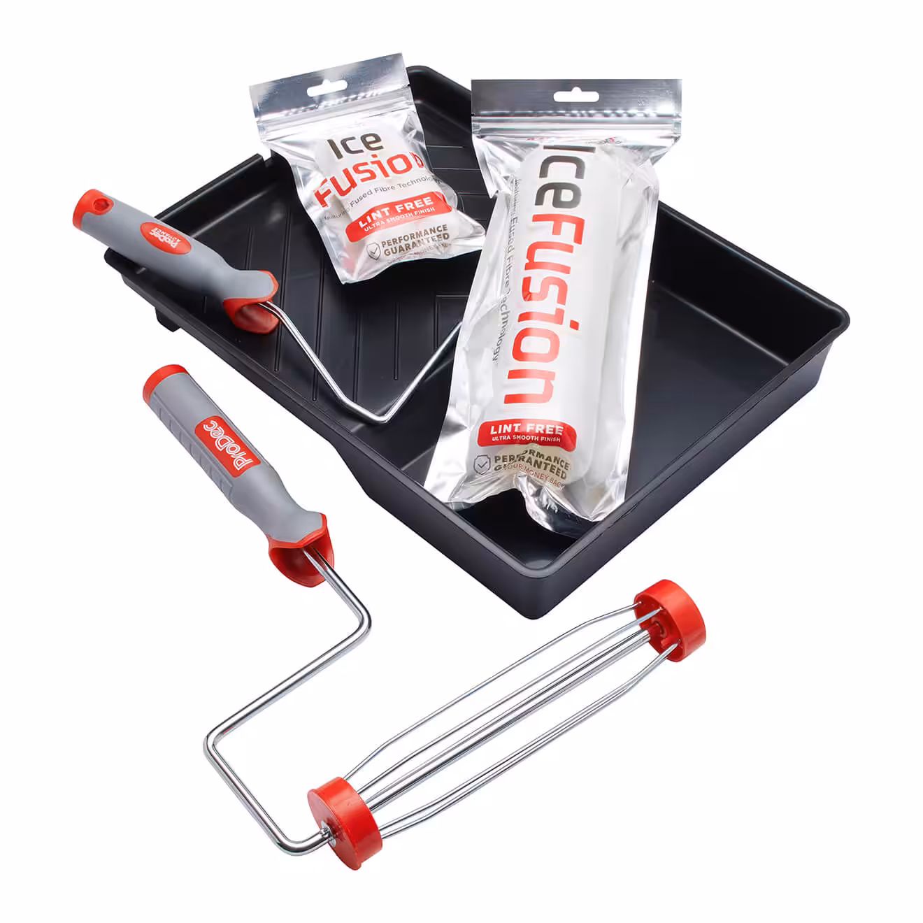 Професионален сет од 6 дела од серијата Ice Fusion, со напредна Fused Fibre Technology™ – специјално развиени синтетички влакна што ја задржуваат формата за време на употреба и по миење, овозможувајќи исклучително мазен финиш повторно и повторно. Ова е најблиску до финиш како со прскање што може да се постигне со ваљак.