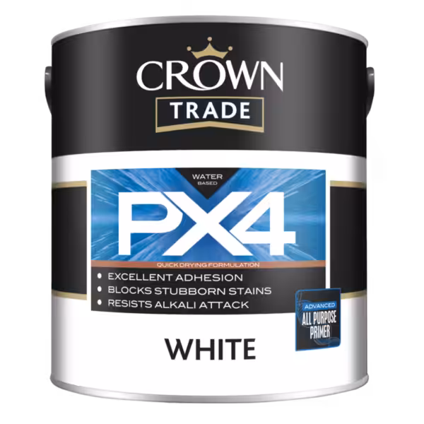 PX4 е премиум брзосушечки прајмер, специјално формулиран за внатрешна и надворешна употреба, обезбедувајќи извонредна адхезија на тешко прилепливи површини. Овој високоефикасен основен премаз е идеален за стакло, керамички плочки, меламин, претходно боени површини, повеќето видови дрво и обоени метали, нудејќи силна врска помеѓу подлогата и завршниот слој.