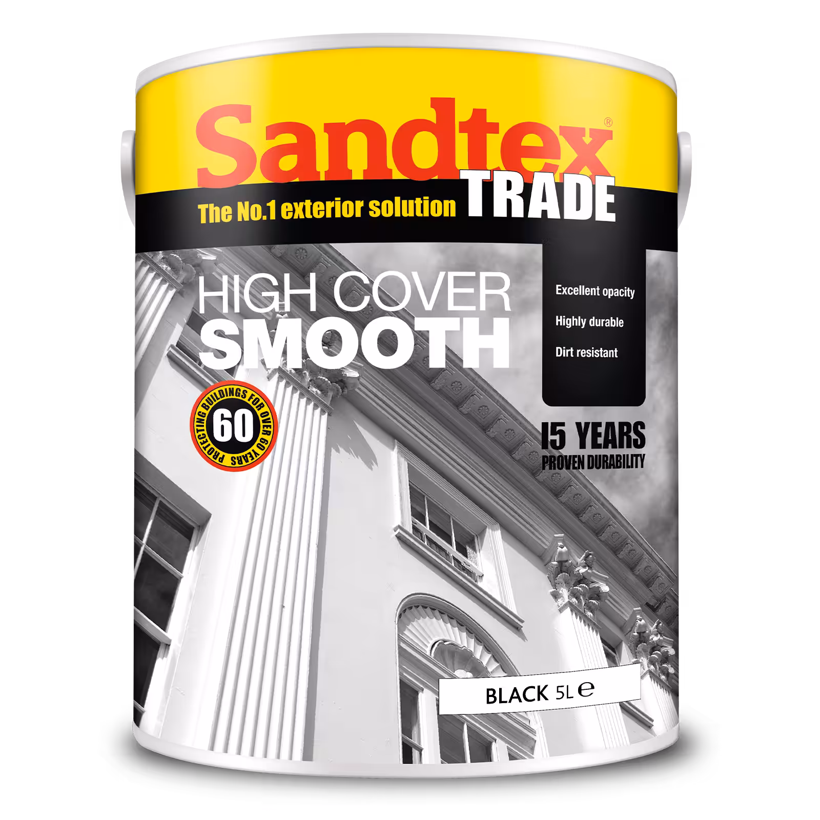Sandtex High Cover Smooth е фасадна боја на водена база со висока покривна моќ, наменета за надворешни ѕидови и фасадни површини. Формулирана со специјална технологија за засилено покривање, оваа боја овозможува постигнување одлични резултати со помал број на слоеви. Пружа мазна и униформа завршница која не само што изгледа естетски, туку и обезбедува долготрајна заштита од атмосферски влијанија.