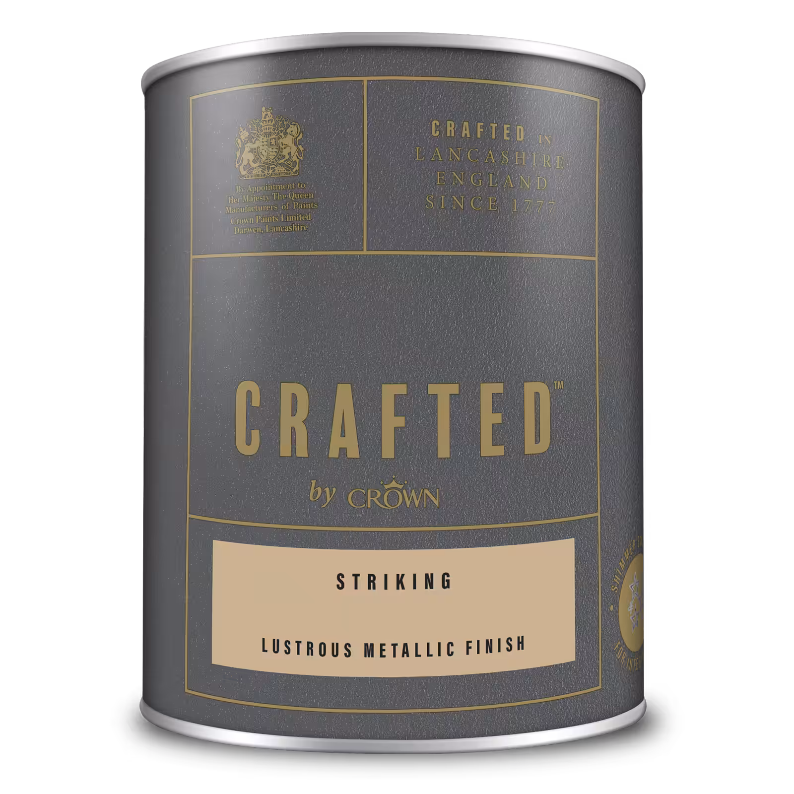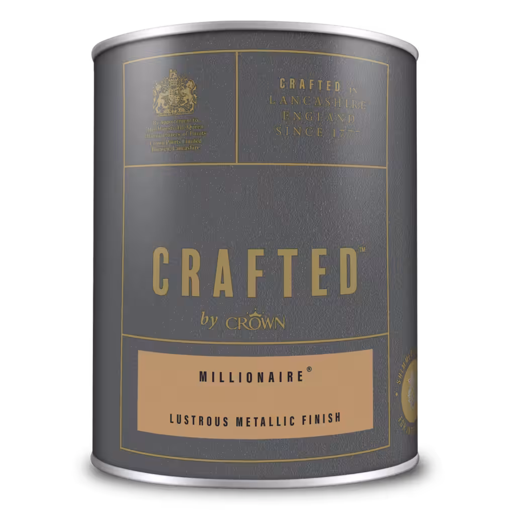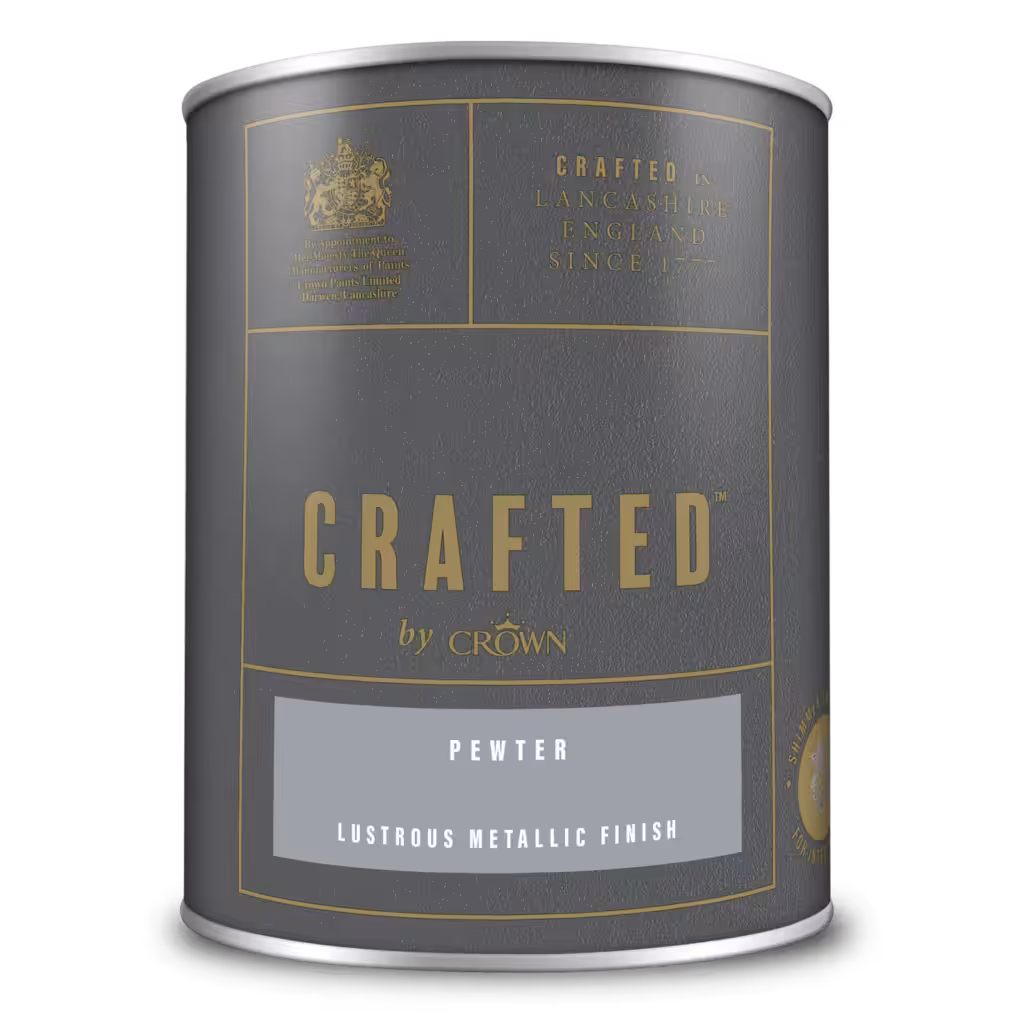 Една од највпечатливите бои за внатрешни ѕидови и дрво од CROWN, CRAFTED™️ by Crown Lustrous Metallic Emulsion, нуди зачудувачки сјаен металик финиш што внесува елеганција и софистицираност во секој простор.